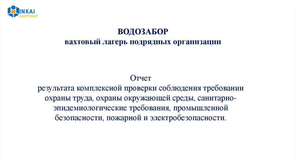 Водозабор. Вахтовый лагерь подрядных организации. Отчет результата комплексной проверки соблюдения требовании охраны труда