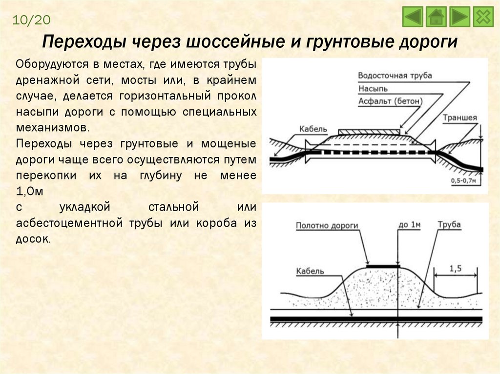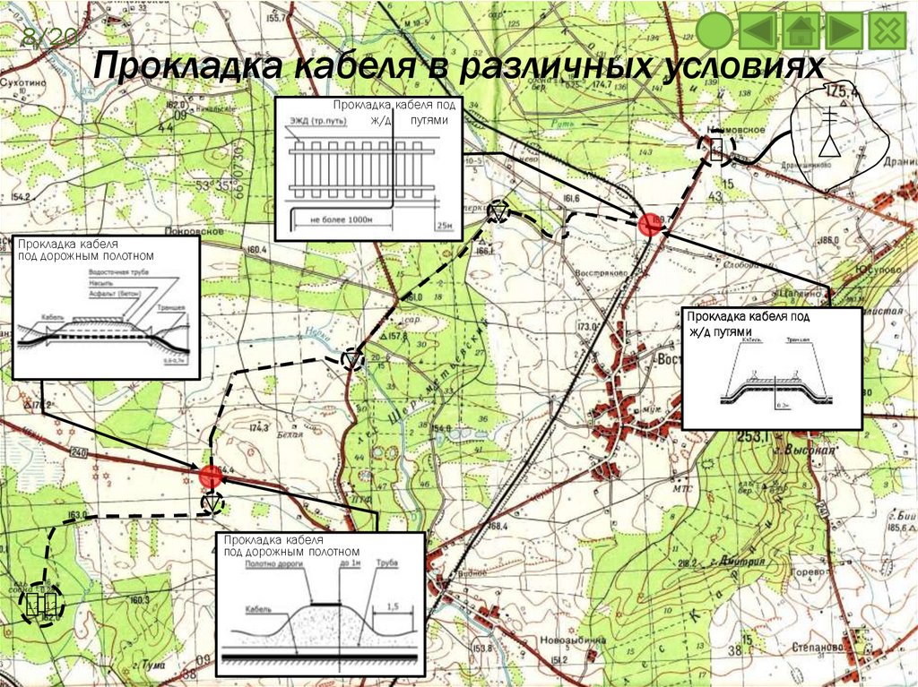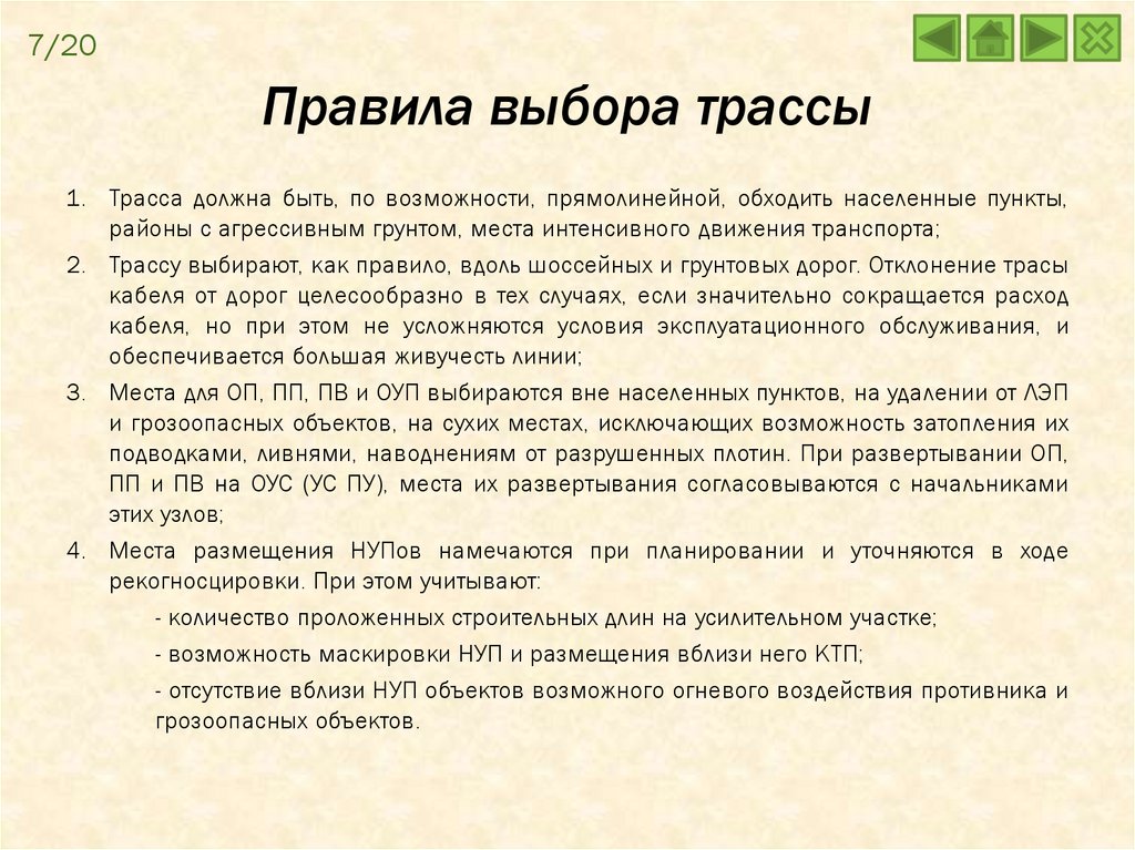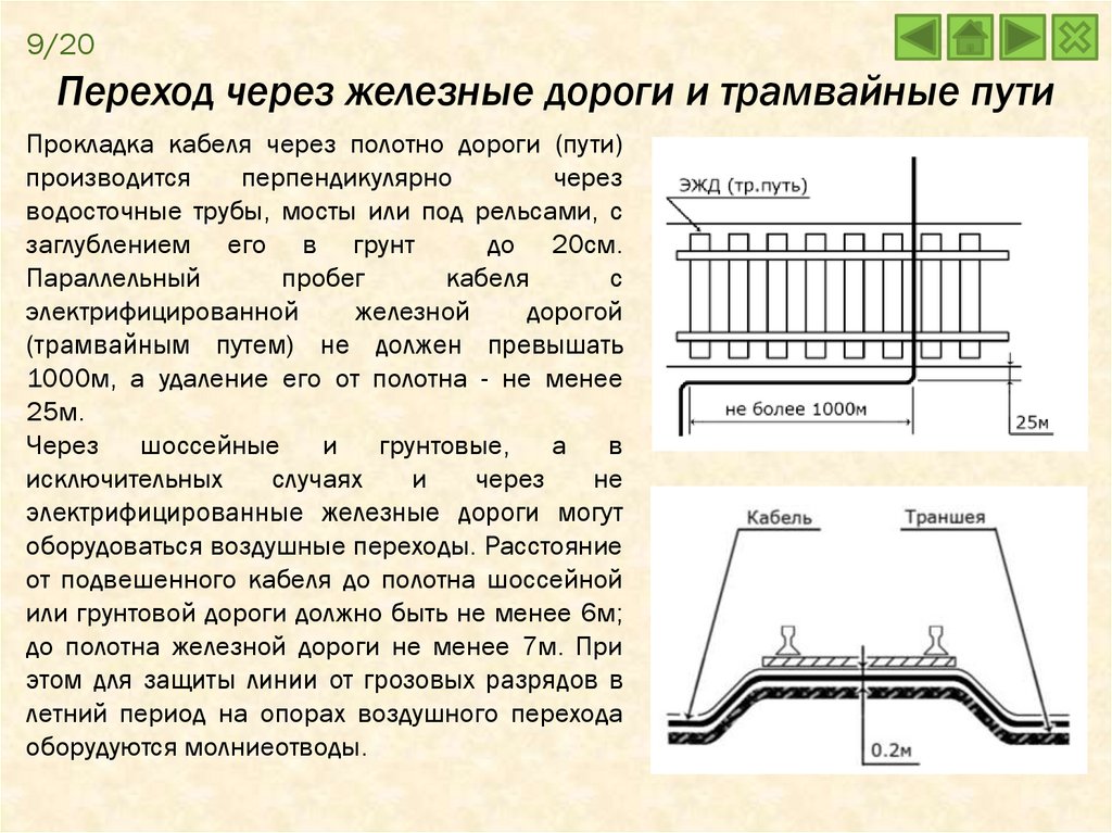 Правила выбора трассы, прокладка кабеля в разных условиях;