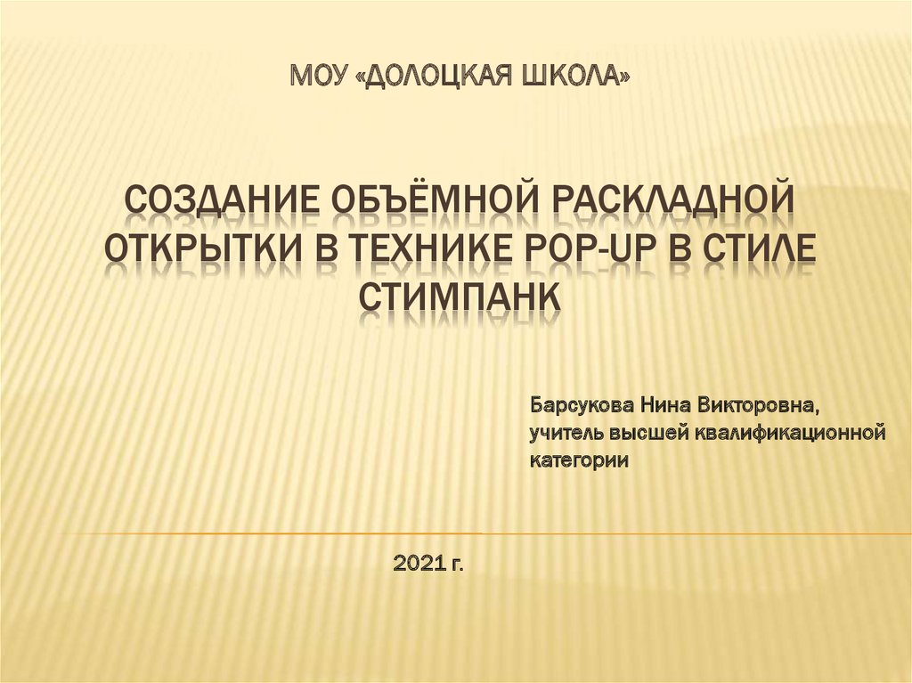МОУ «ДОЛОЦКАЯ ШКОЛА»СОЗДАНИЕ ОБЪЁМНОЙ РАСКЛАДНОЙ