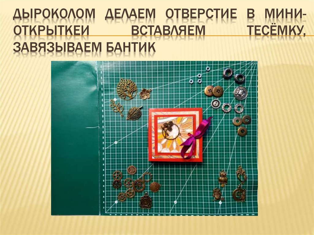 ДЫРОКОЛОМ ДЕЛАЕМ ОТВЕРСТИЕ В МИНИОТКРЫТКЕИВСТАВЛЯЕМ