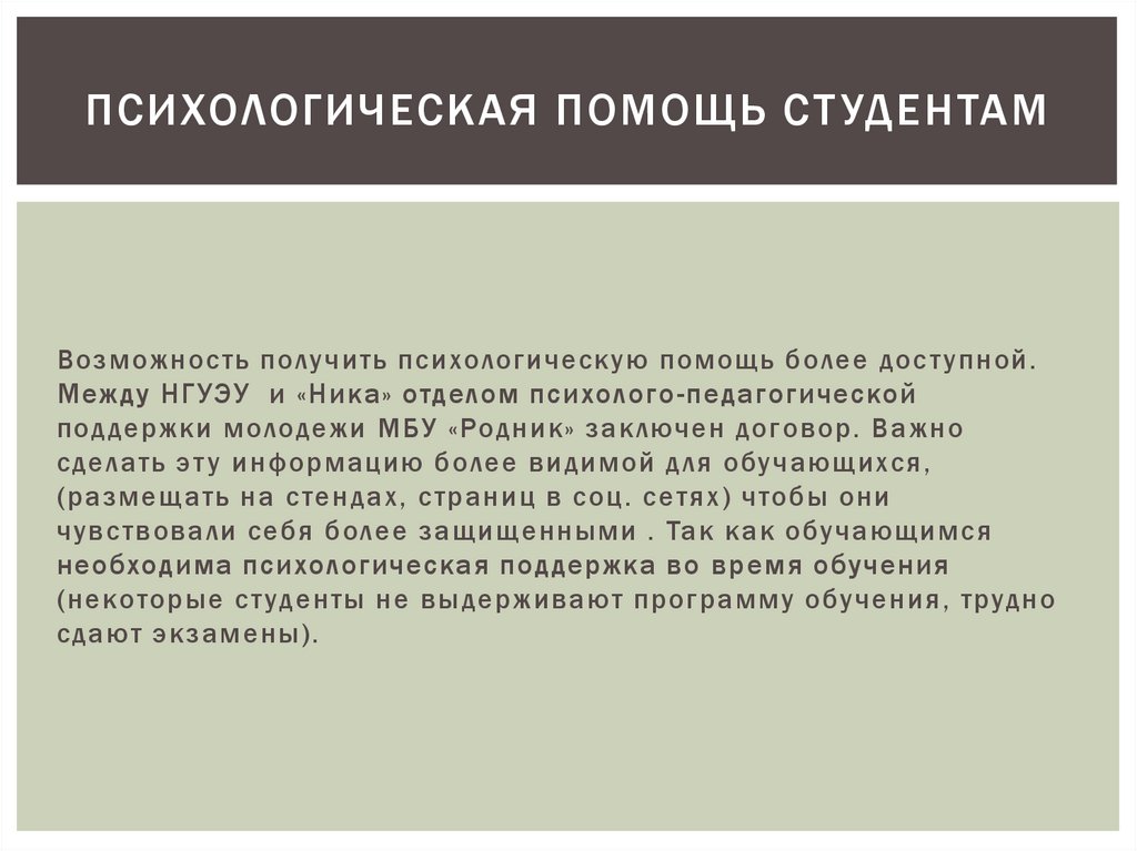 ПСИХОЛОГИЧЕСКАЯ ПОМОЩЬ СТ УДЕНТАМВозможнос ть получить психологическую помощь более дос т упной.