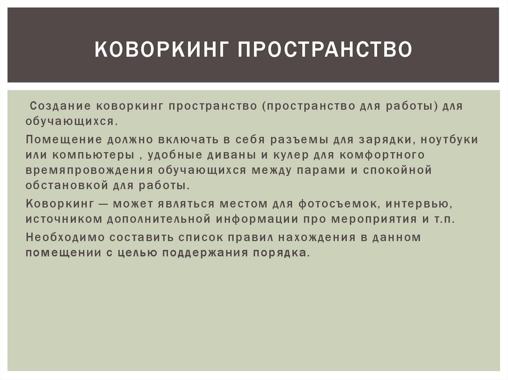 КОВОРКИНГ ПРОСТРАНСТВОСоздание коворкинг прос транс тво (прос транс тво для работы) для