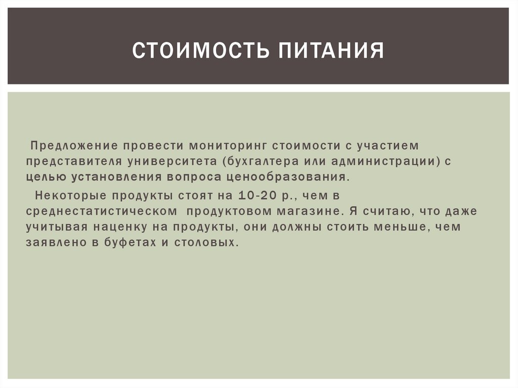 СТОИМОСТЬ ПИТАНИЯПредложение провес ти мониторинг с тоимос ти с учас тием
