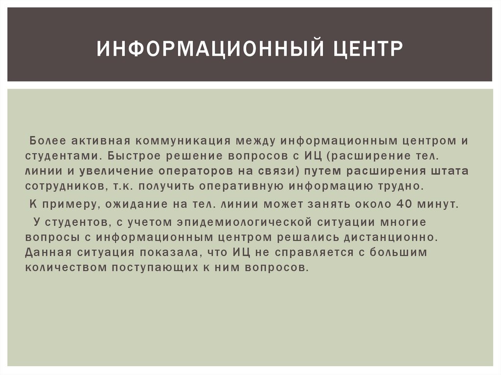 ИНФОРМАЦИОННЫЙ ЦЕНТРБолее активная коммуникация между информационным центром и
