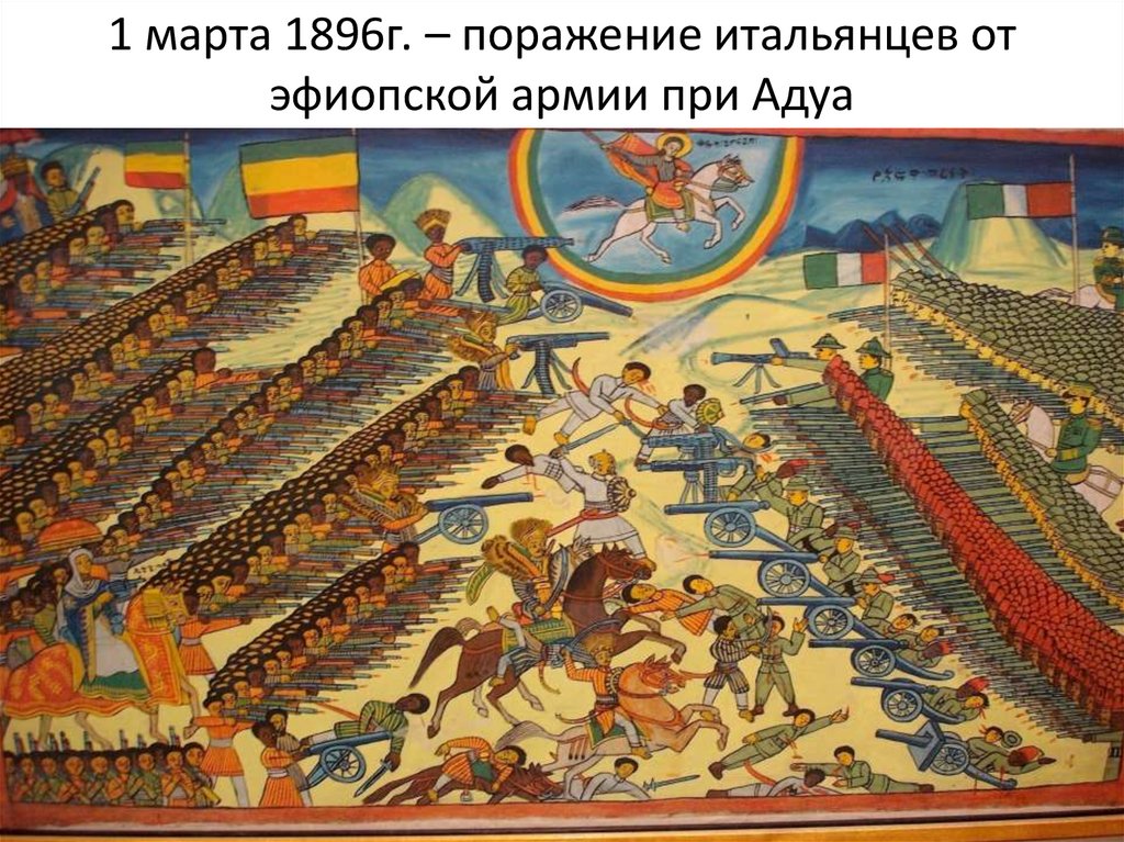 1 марта 1896г. – поражение итальянцев отэфиопской армии при Адуа