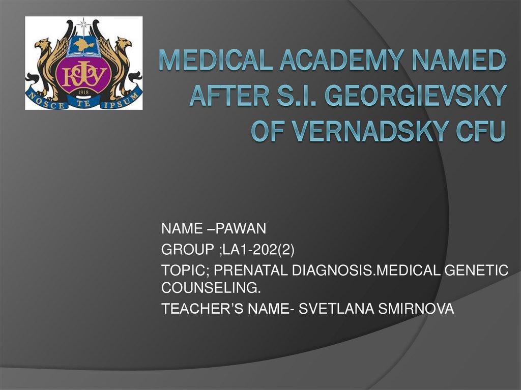 TOPIC; PRENATAL DIAGNOSIS.MEDICAL GENETIC