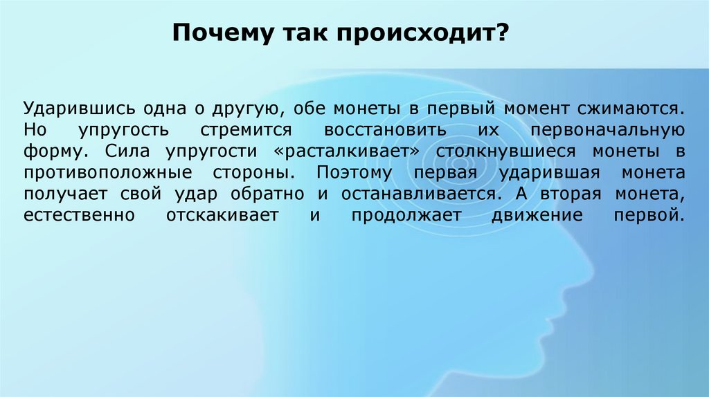 Почему так происходит?Ударившись одна о другую, обе монеты в первый момент сжимаются.