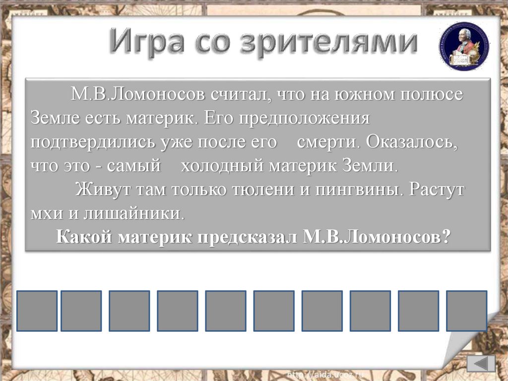 М.В.Ломоносов считал, что на южном полюсеЗемле есть материк. Его предположения