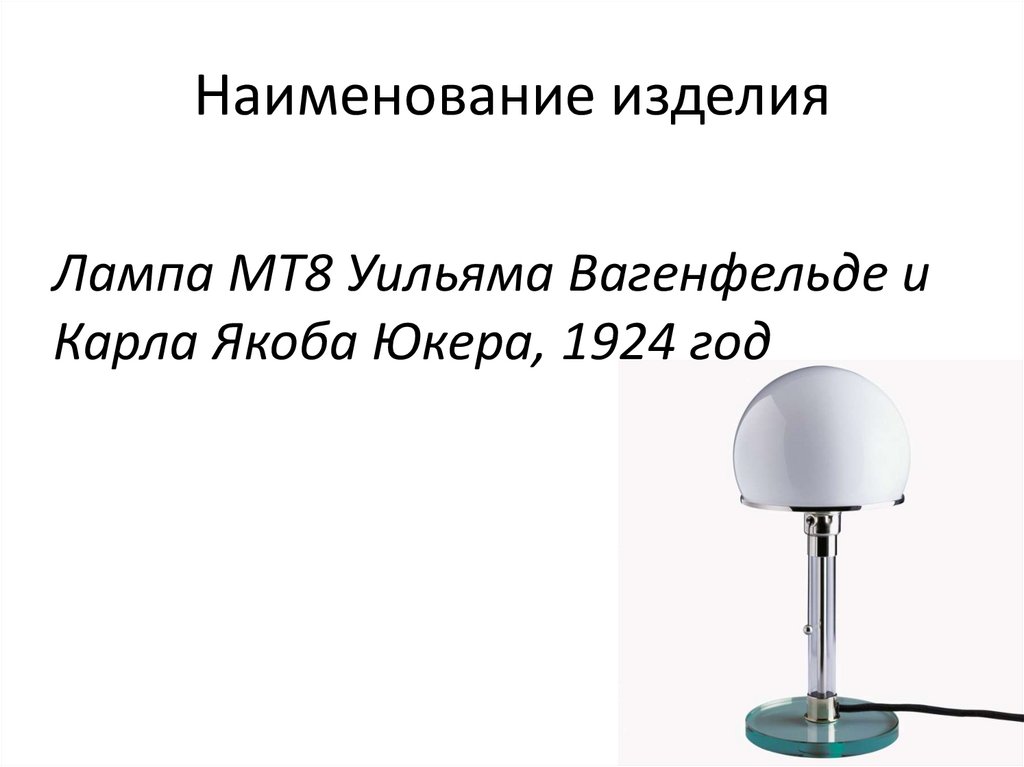 Наименование изделияЛампа MT8 Уильяма Вагенфельде и