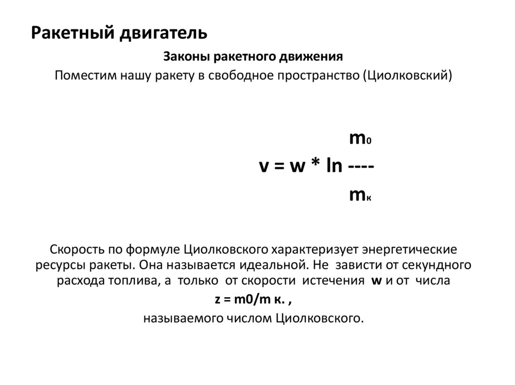 Поместим нашу ракету в свободное пространство (Циолковский)