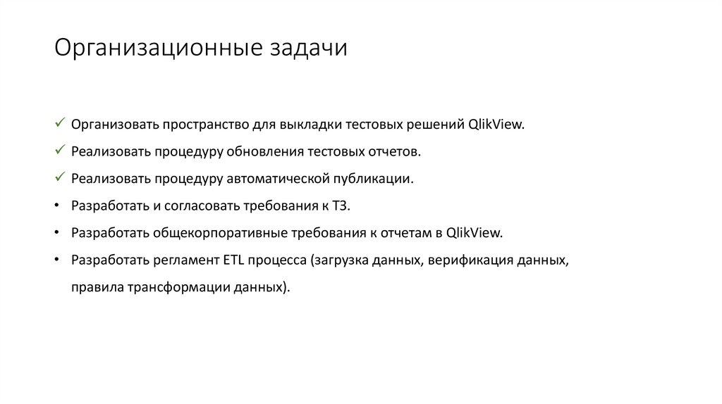 • Разработать общекорпоративные требования к отчетам в QlikView.