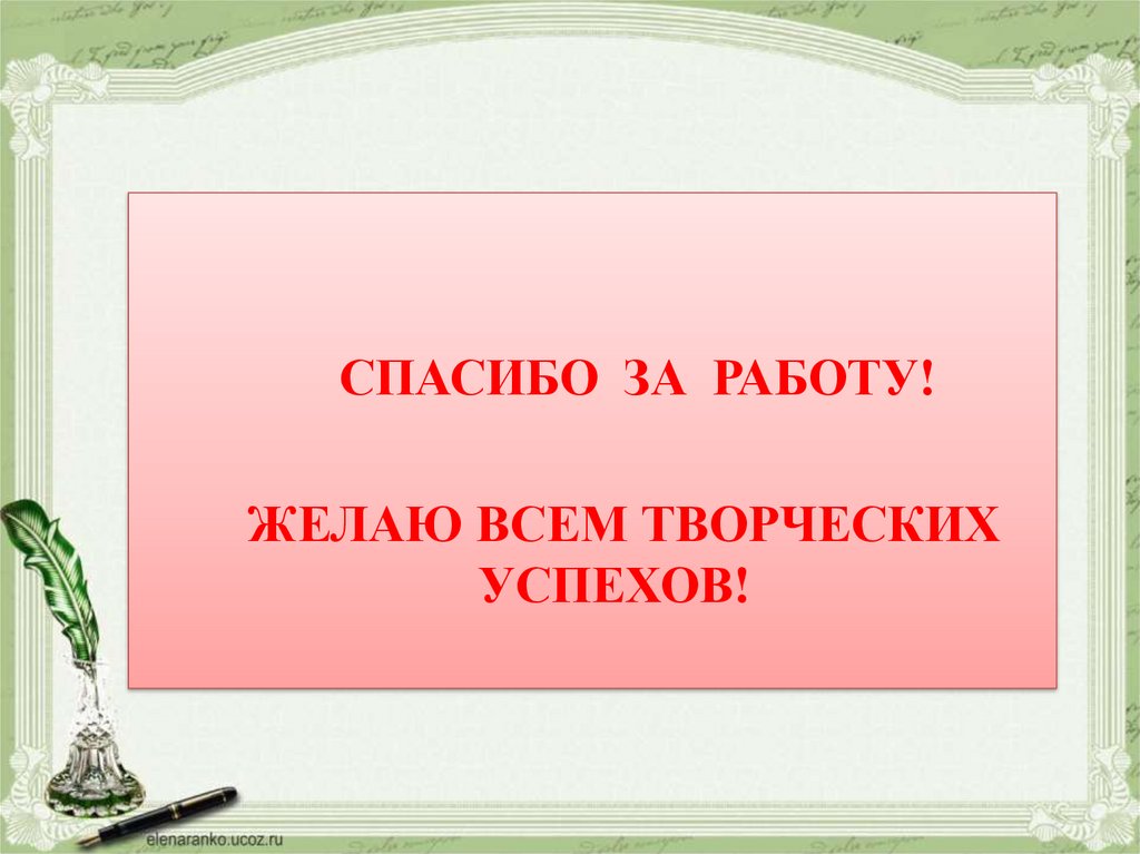 СПАСИБО ЗА РАБОТУ!ЖЕЛАЮ ВСЕМ ТВОРЧЕСКИХ