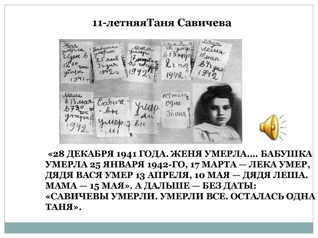 11-летняяТаня Савичева.«28 ДЕКАБРЯ 1941 ГОДА. ЖЕНЯ УМЕРЛА…. БАБУШКА