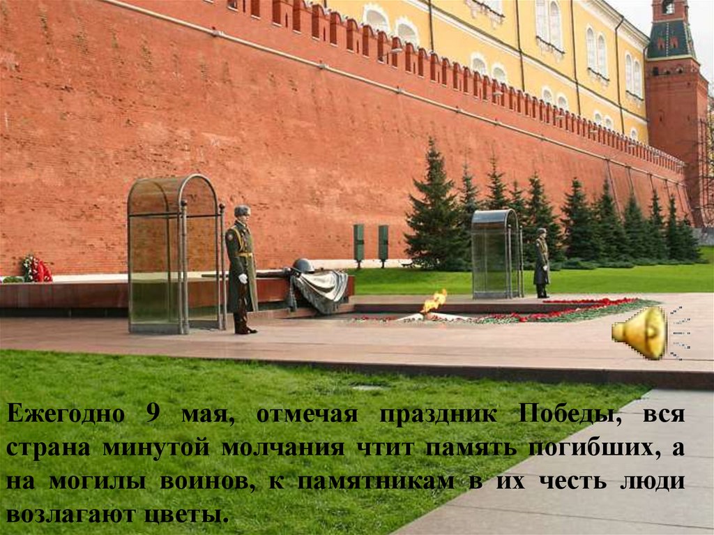 Ежегодно 9 мая, отмечая праздник Победы, всястрана минутой молчания чтит память погибших, а