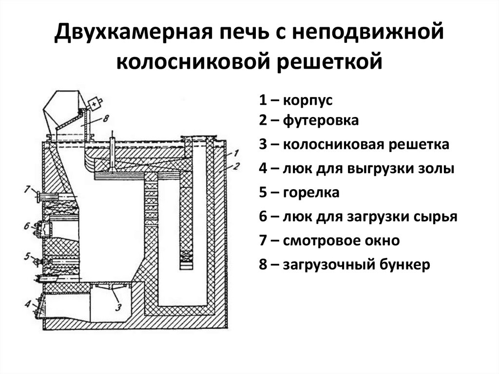 Двухкамерная печь с неподвижнойколосниковой решеткой