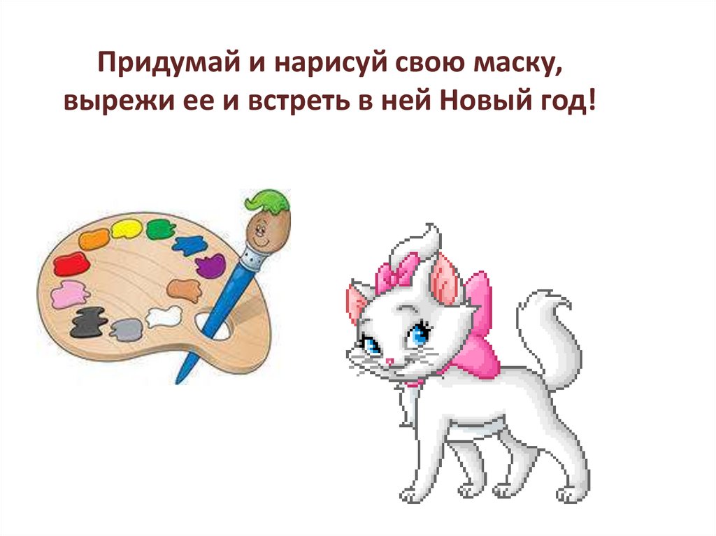 Придумай и нарисуй свою маску,вырежи ее и встреть в ней Новый год!