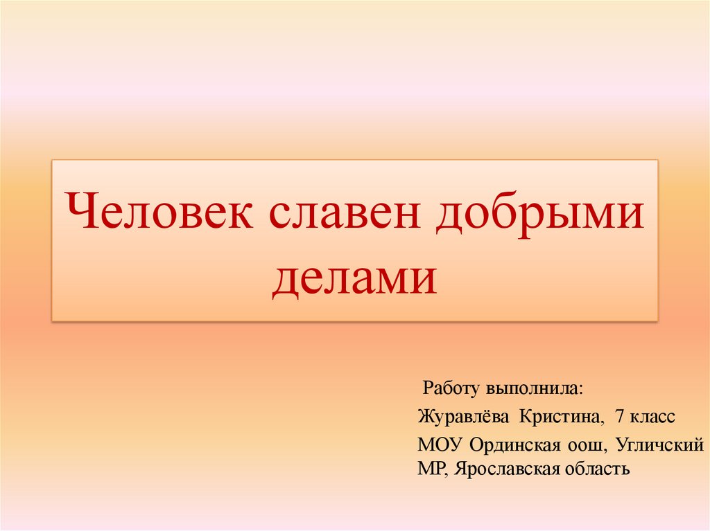 Человек славен добрымиделами