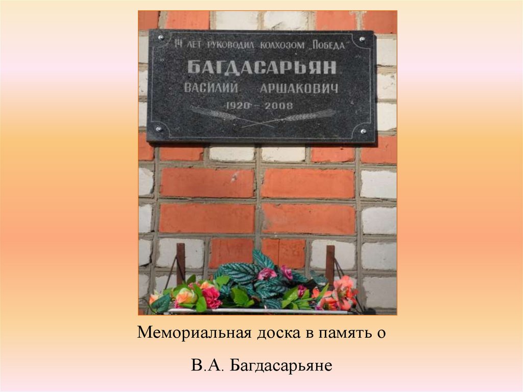 Мемориальная доска в память оВ.А. Багдасарьяне
