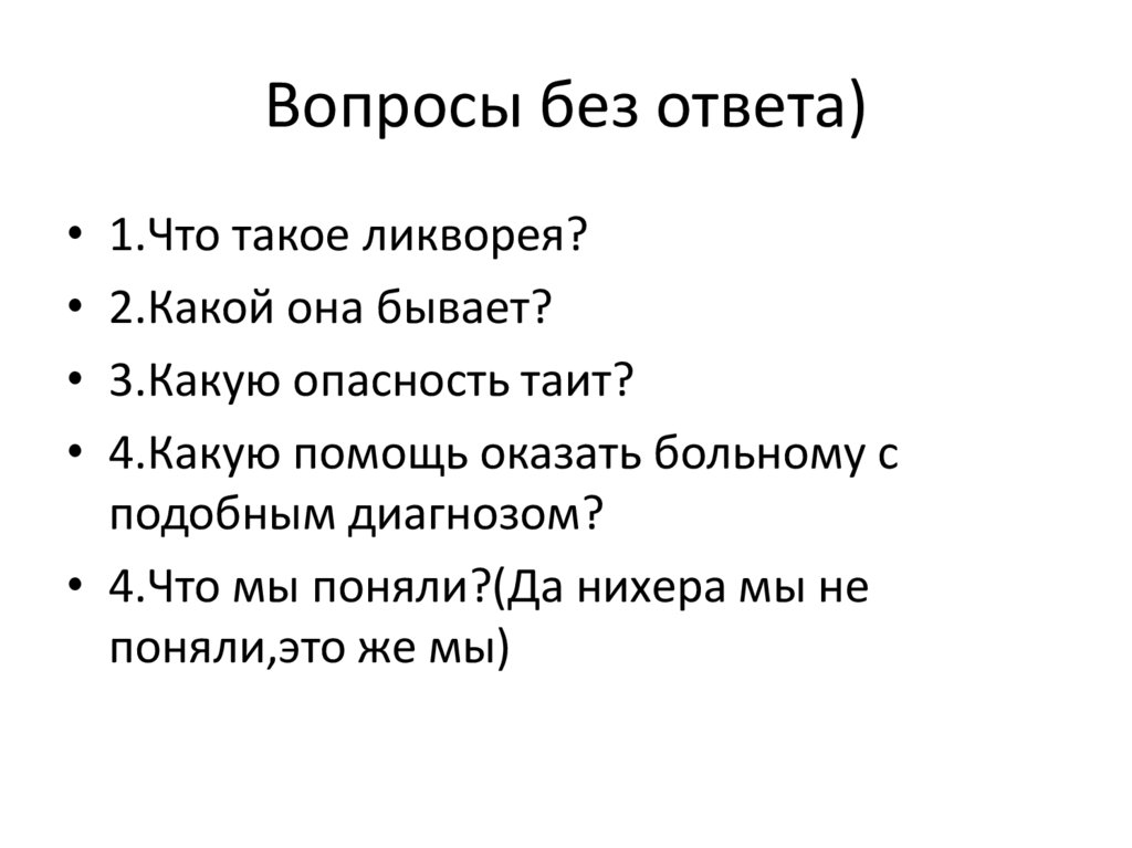 Вопросы без ответа)1.Что такое ликворея?