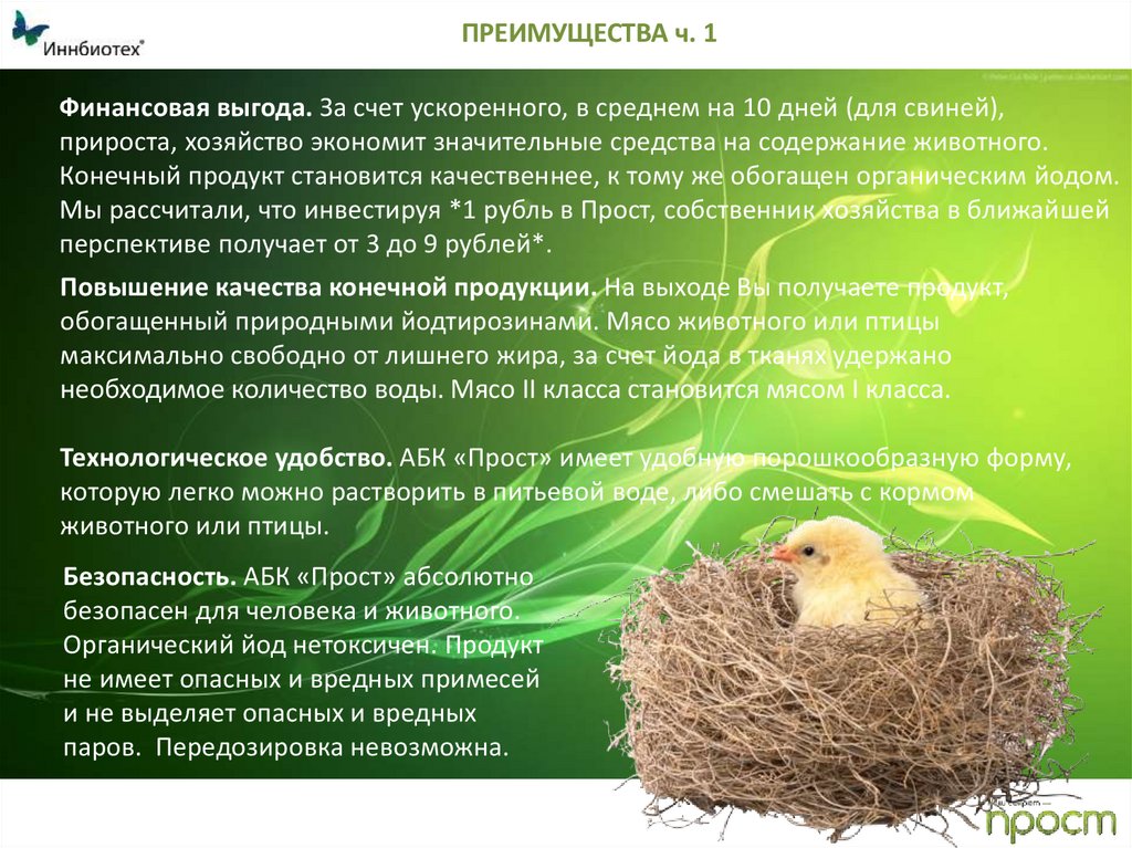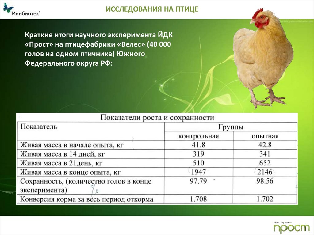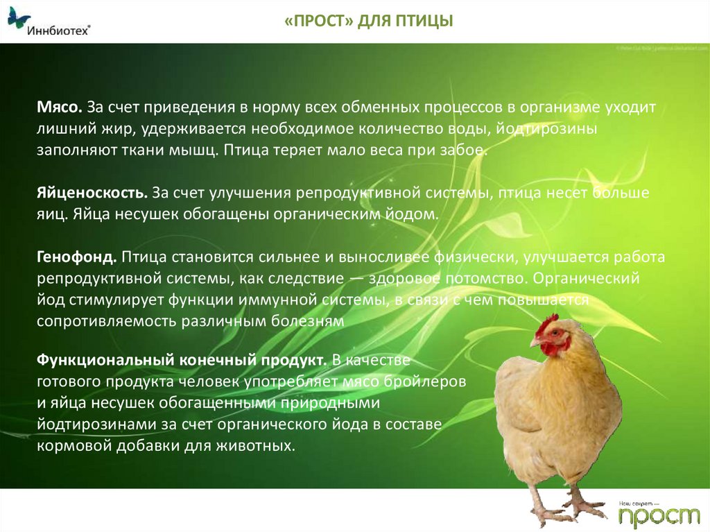 «ПРОСТ» ДЛЯ ПТИЦЫМясо. За счет приведения в норму всех обменных процессов в организме уходит