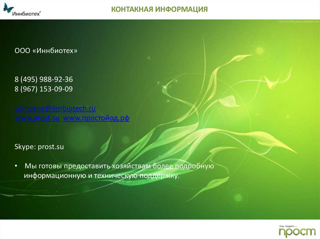 КОНТАКНАЯ ИНФОРМАЦИЯООО «Иннбиотех»