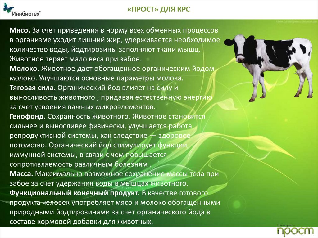 «ПРОСТ» ДЛЯ КРСМясо. За счет приведения в норму всех обменных процессов