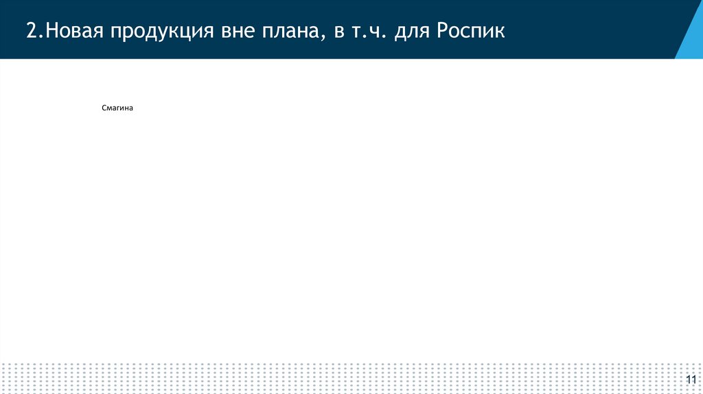 2.Новая продукция вне плана, в т.ч. для РоспикСмагина