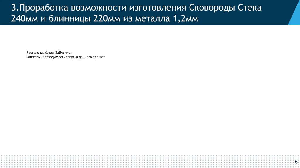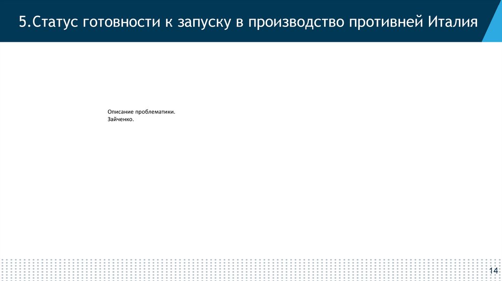 5.Статус готовности к запуску в производство противней ИталияОписание проблематики.