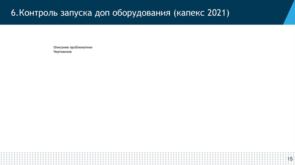 6.Контроль запуска доп оборудования (капекс 2021)Описание проблематики