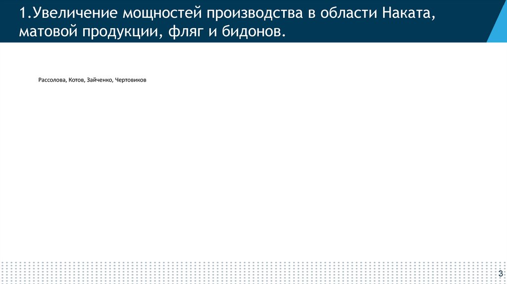 1.Увеличение мощностей производства в области Наката,матовой продукции, фляг и бидонов.