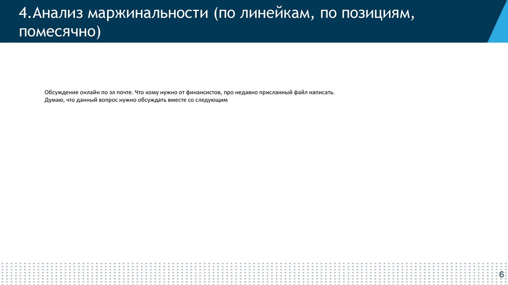 Обсуждение онлайн по эл почте. Что кому нужно от финансистов, про недавно присланный файл написать.