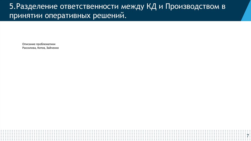 5.Разделение ответственности между КД и Производством впринятии оперативных решений.