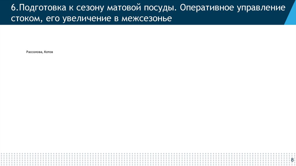 6.Подготовка к сезону матовой посуды. Оперативное управление стоком, его увеличение в межсезонье