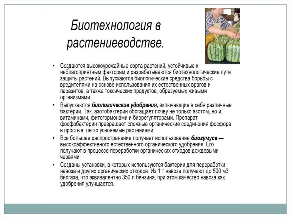 ВИДЫ БИОТЕХНОЛОГИЙ в :1.и