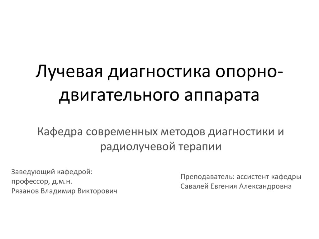 Лучевая диагностика опорнодвигательного аппаратаКафедра современных методов диагностики и