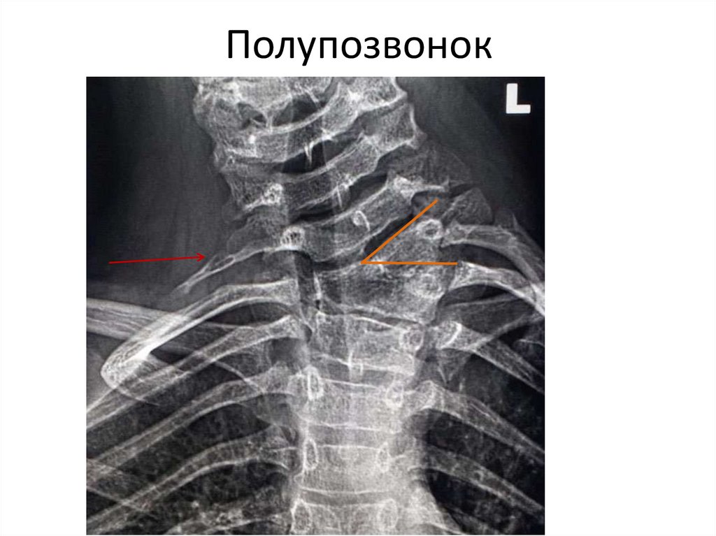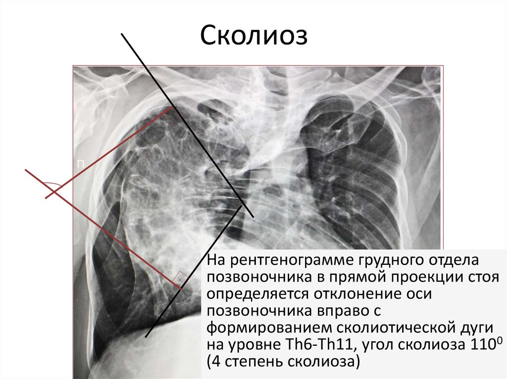 противодугой на уровне Th12-L4, угол сколиоза 450. Признаки
