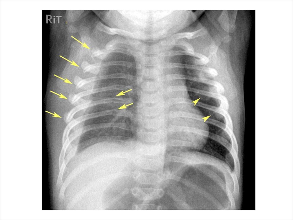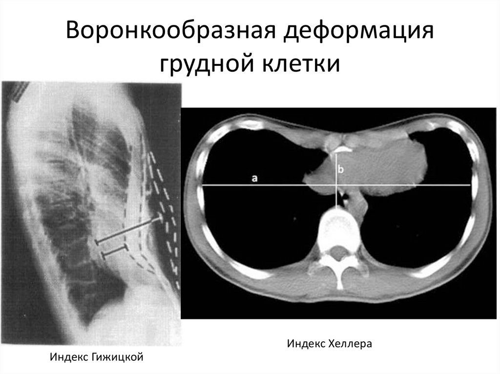 (угол кифоза 720). Вентральная клиновидность тел грудных позвонков на