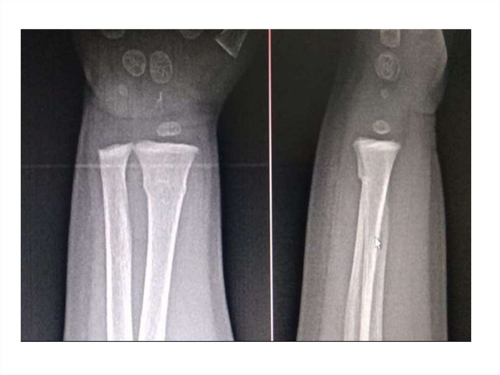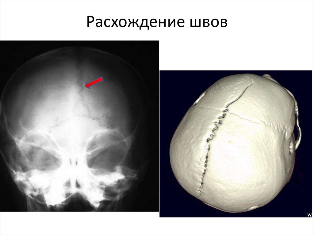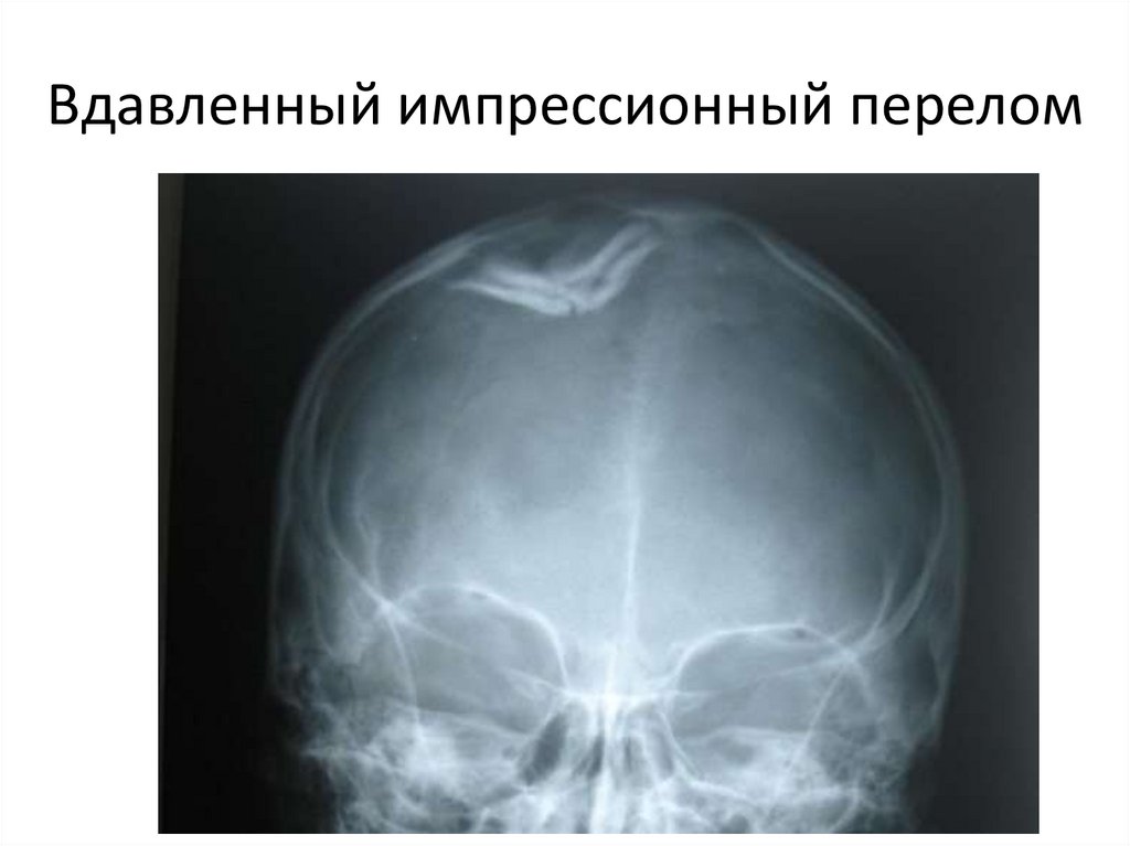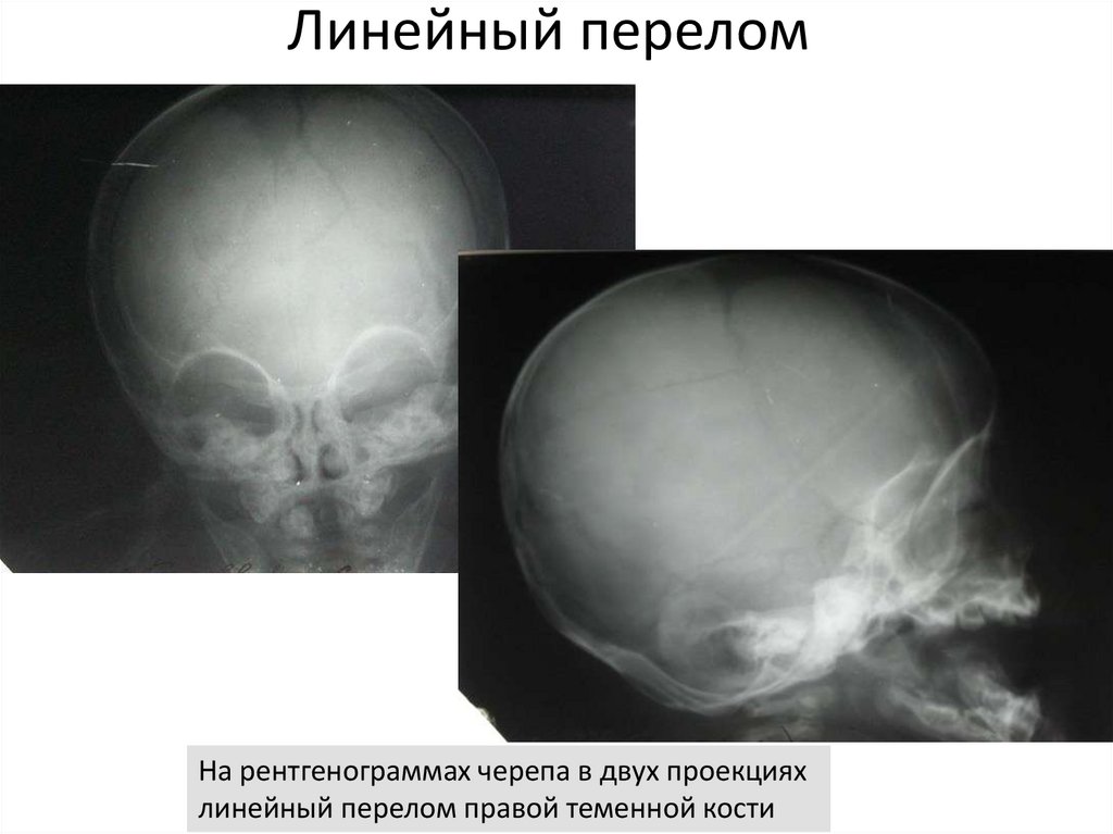 Линейный переломНа рентгенограммах черепа в двух проекциях