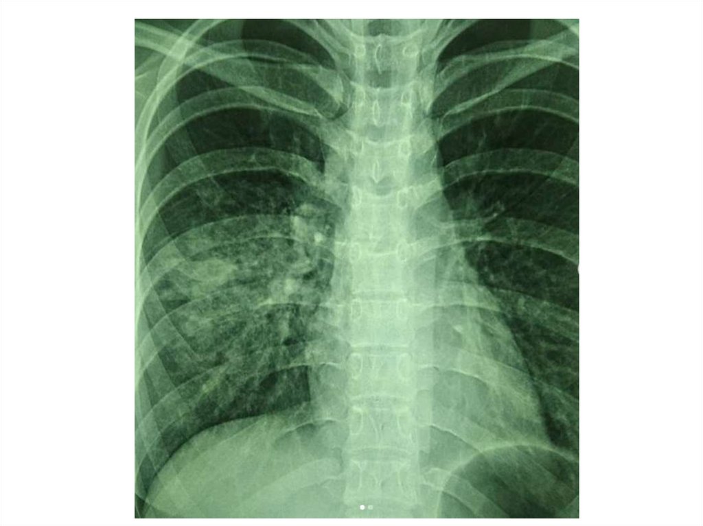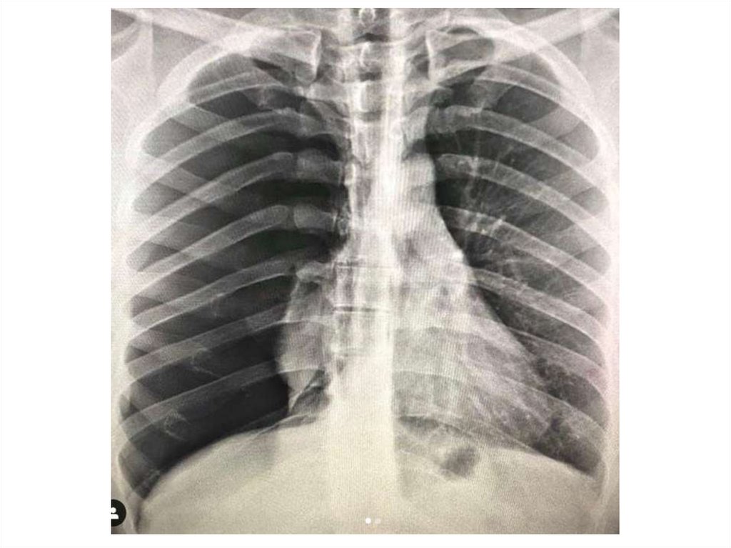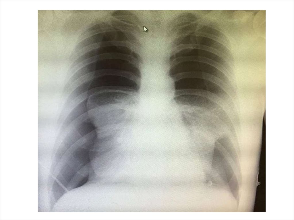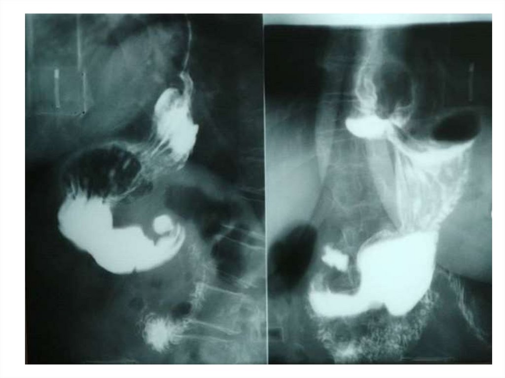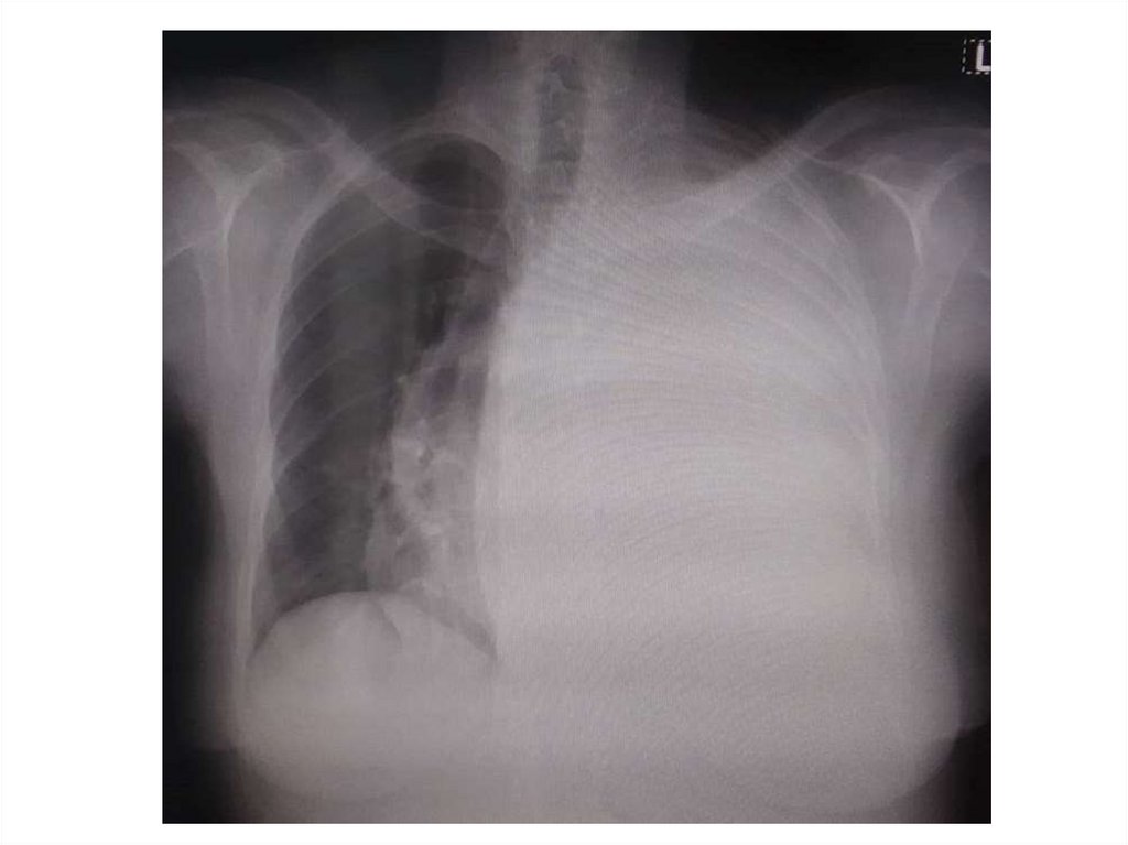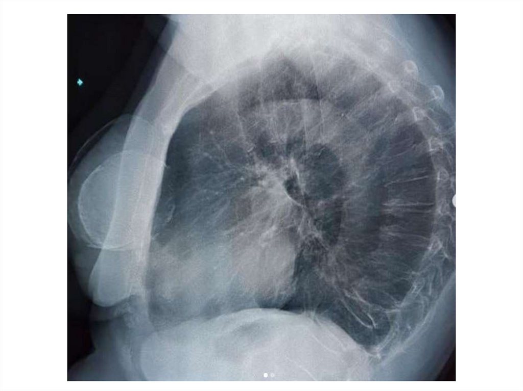 На рентгенограммах грудного и поясничного отделов позвоночника вдвух проекциях лёжа отклонение оси позвоночника влево на уровне Th4Th12, угол сколиоза 650 (4 степень сколиоза) с правосторонней