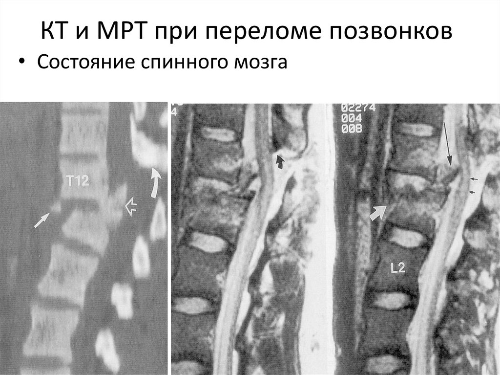КТ и МРТ при переломе позвонков• Состояние спинного мозга