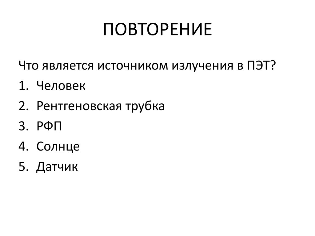 ПОВТОРЕНИЕЧто является источником излучения в ПЭТ?