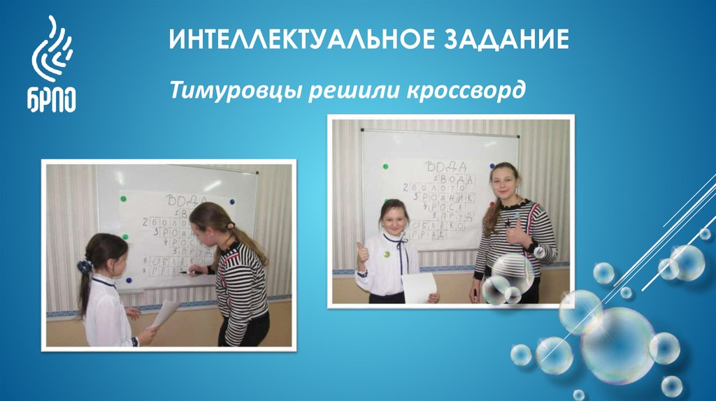ИНТЕЛЛЕКТУАЛЬНОЕ ЗАДАНИЕТимуровцы решили кроссворд