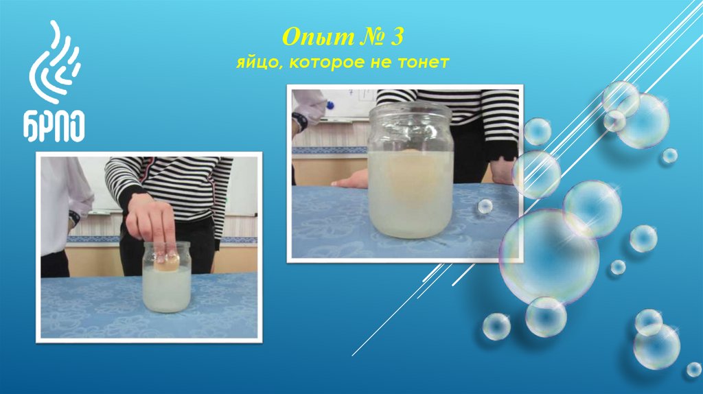 Опыт № 3яйцо, которое не тонет