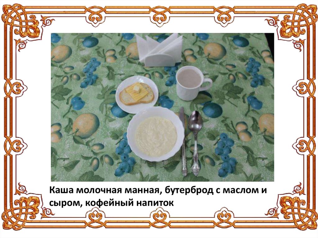 Каша молочная манная, бутерброд с маслом исыром, кофейный напиток