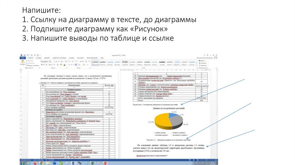 Напишите:1. Ссылку на диаграмму в тексте, до диаграммы