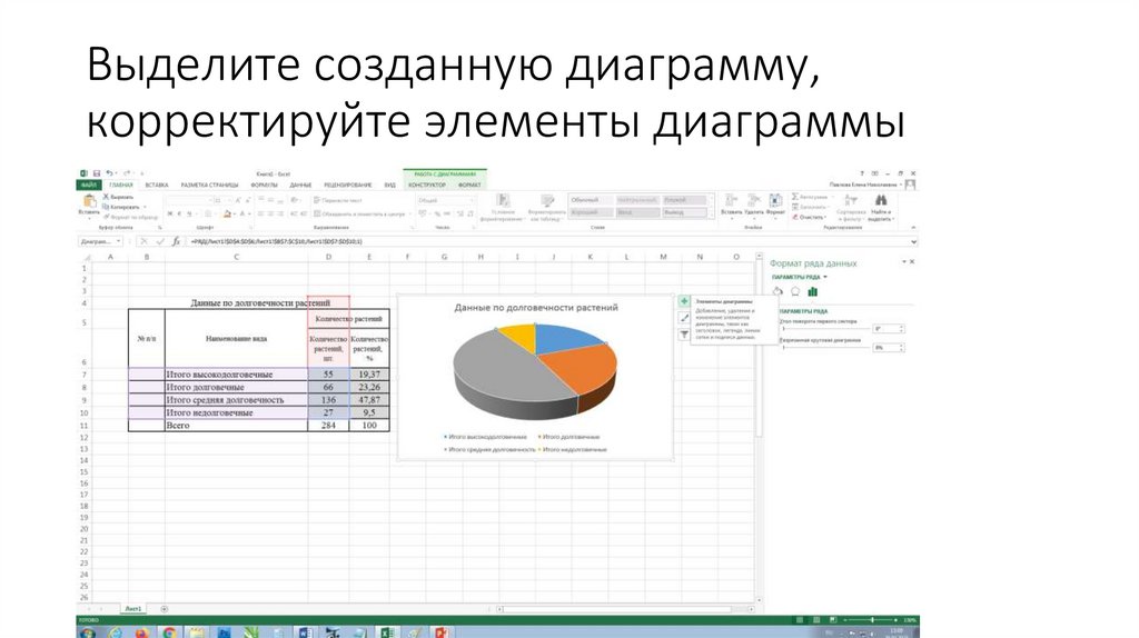 Выделите созданную диаграмму,корректируйте элементы диаграммы