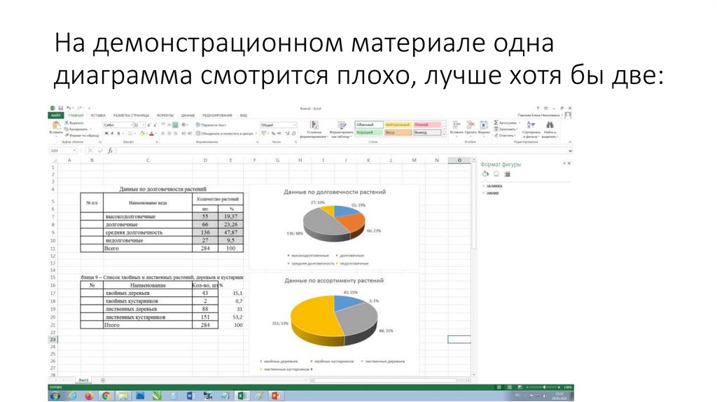 На демонстрационном материале однадиаграмма смотрится плохо, лучше хотя бы две: