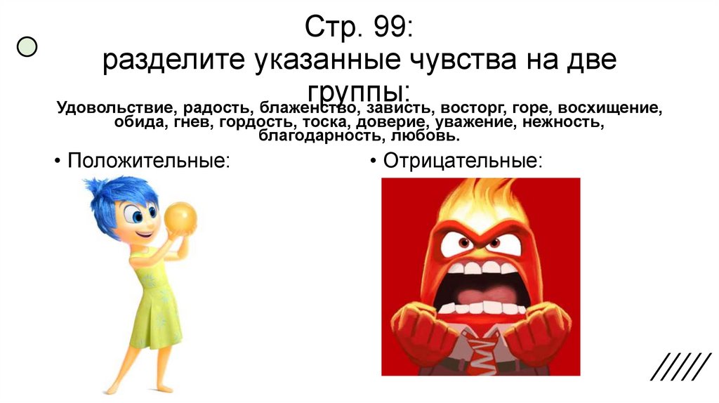 Стр. 99:разделите указанные чувства на две