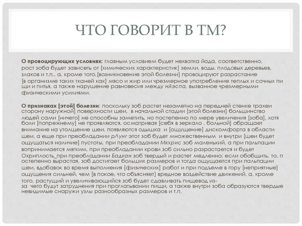 ЧТО ГОВОРИТ В ТМ?О провоцирующих условиях: главным условием будет нехватка йода, соответственно,