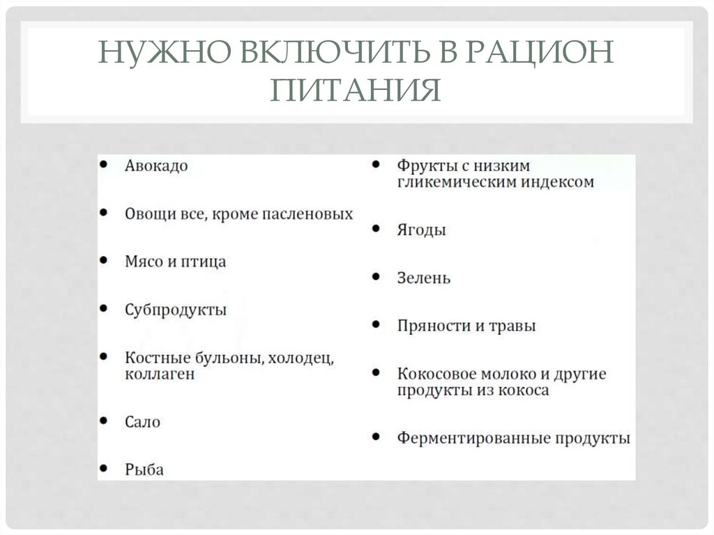 НУЖНО ВКЛЮЧИТЬ В РАЦИОНПИТАНИЯ